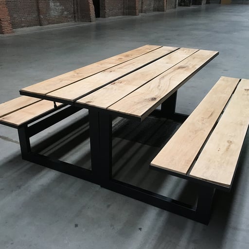 Deze picknicktafels zijn in een handomdraai om te toveren van picknicktafel tot enkele banken.